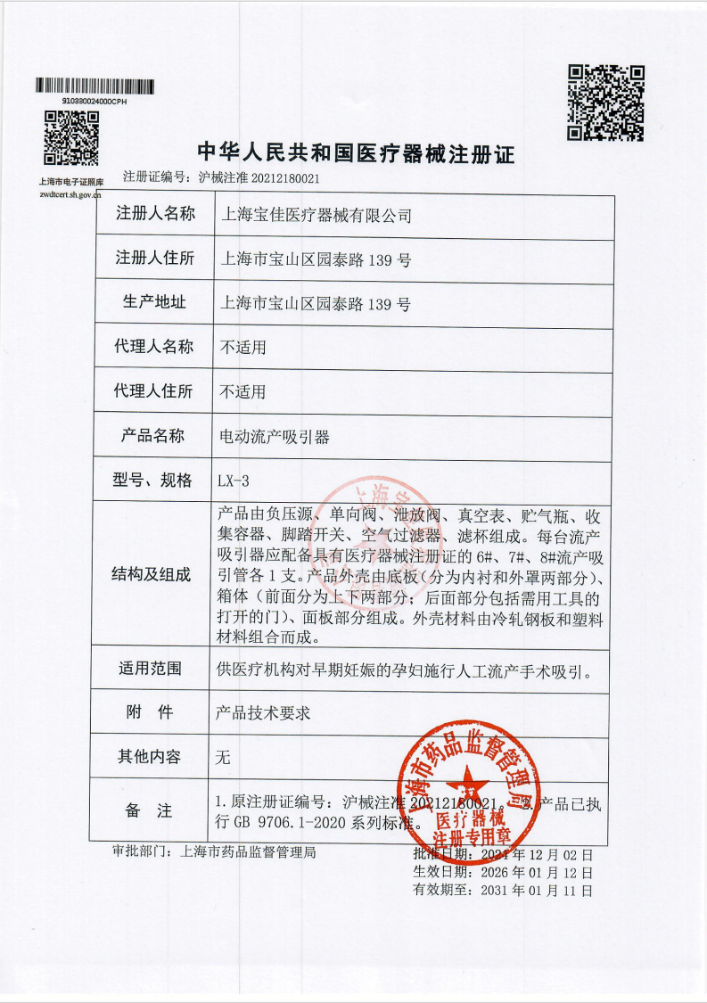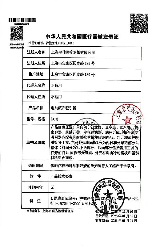 - 斯曼峰LX-3型电动流产吸引器用于医疗机构对早期妊娠的孕妇施行人工流产手术吸引用。