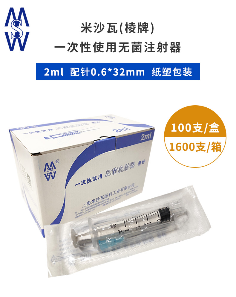 米沙瓦 一次性使用无菌注射器2ml(带针)