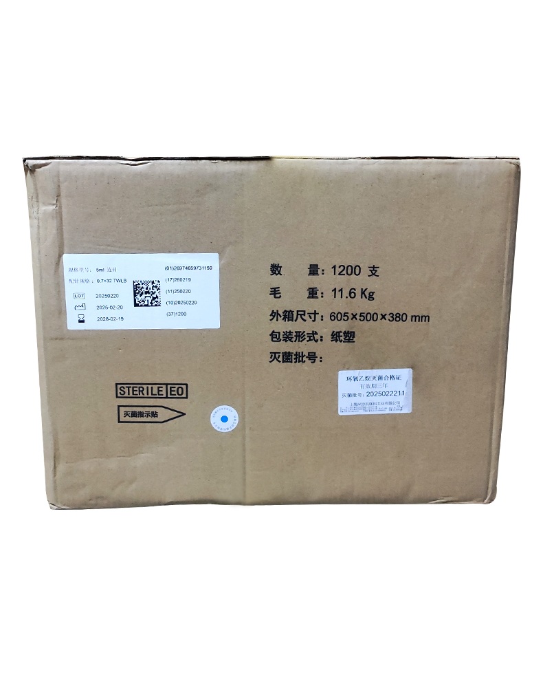 棱牌(米沙瓦)一次性使用无菌注射器 5ml 0.7×32mm 带针