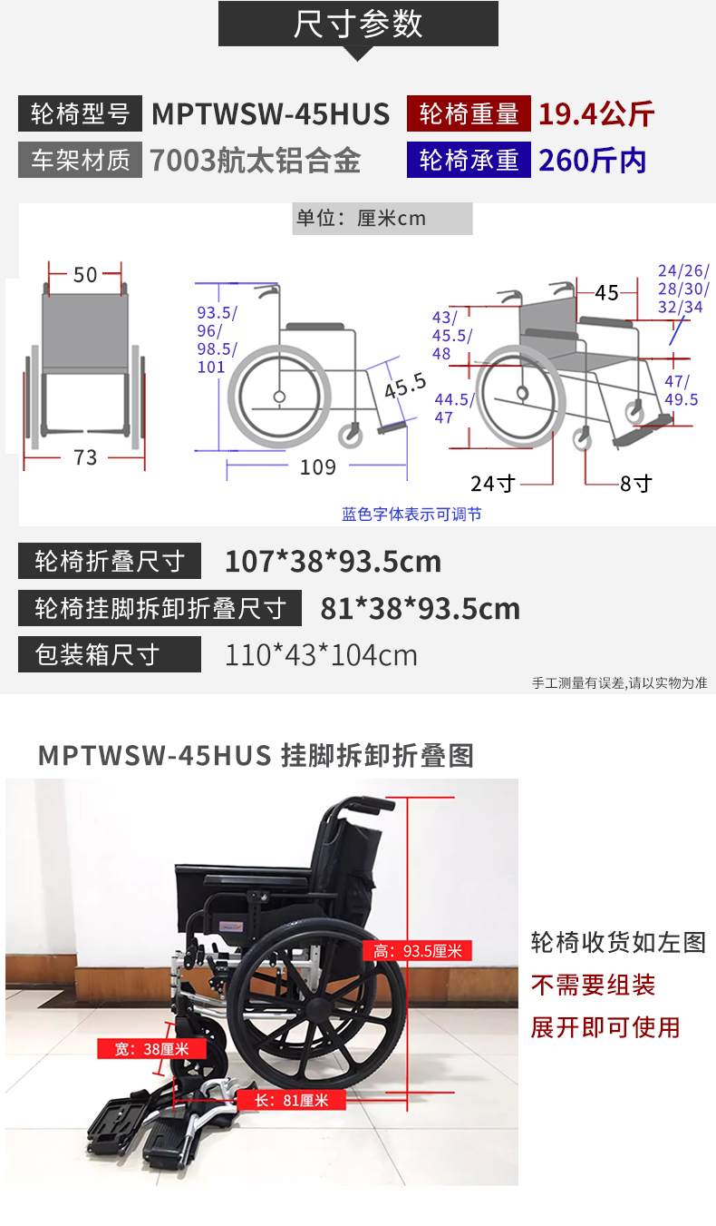 - 轮椅型号:MPTWSW-45HUS