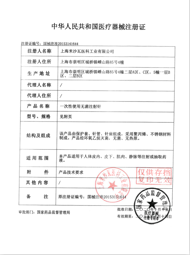 请联系我们 >>购买棱牌(米沙瓦)一次性使用无菌注射针