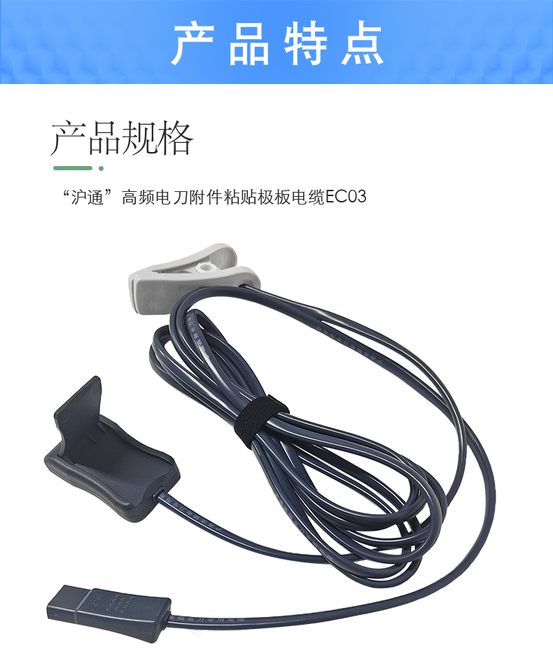 沪通高频电刀配件 电缆 EC03 粘贴极板电缆 扁头带夹子