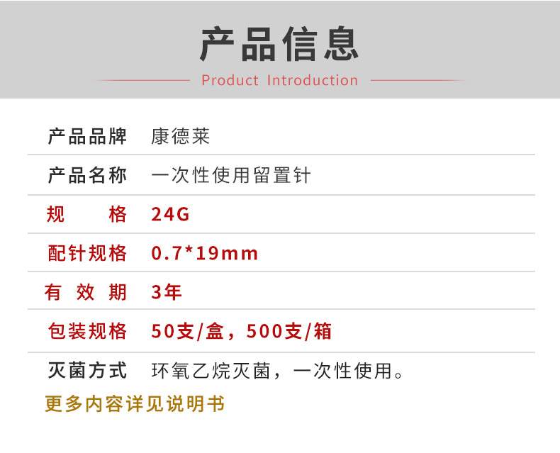 本公司专业经销康德莱一次性使用留置针,批发兼零售康德莱一次性使用留置针24G,在全国医疗单位中享有较高的知名度。公司立足上海,服务全国,信誉第一。 经销品种包括医用电子仪器、精密医疗设备、一次性医疗用品、各类专科器械、实验仪器设备、齿科设备、医用消耗器材、进口医疗器械、家用医疗器械、家用护理保健产品等。欢迎各地客户预约定货。全国免费电话:021-51601230