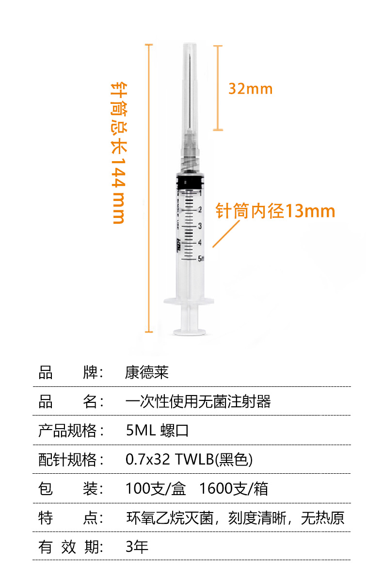康德莱一次性使用无菌注射器5ml | 一次性使用注射器价格 | 一次性使用无菌螺口注射器5ml | 一次性针筒无菌带针头螺口 |