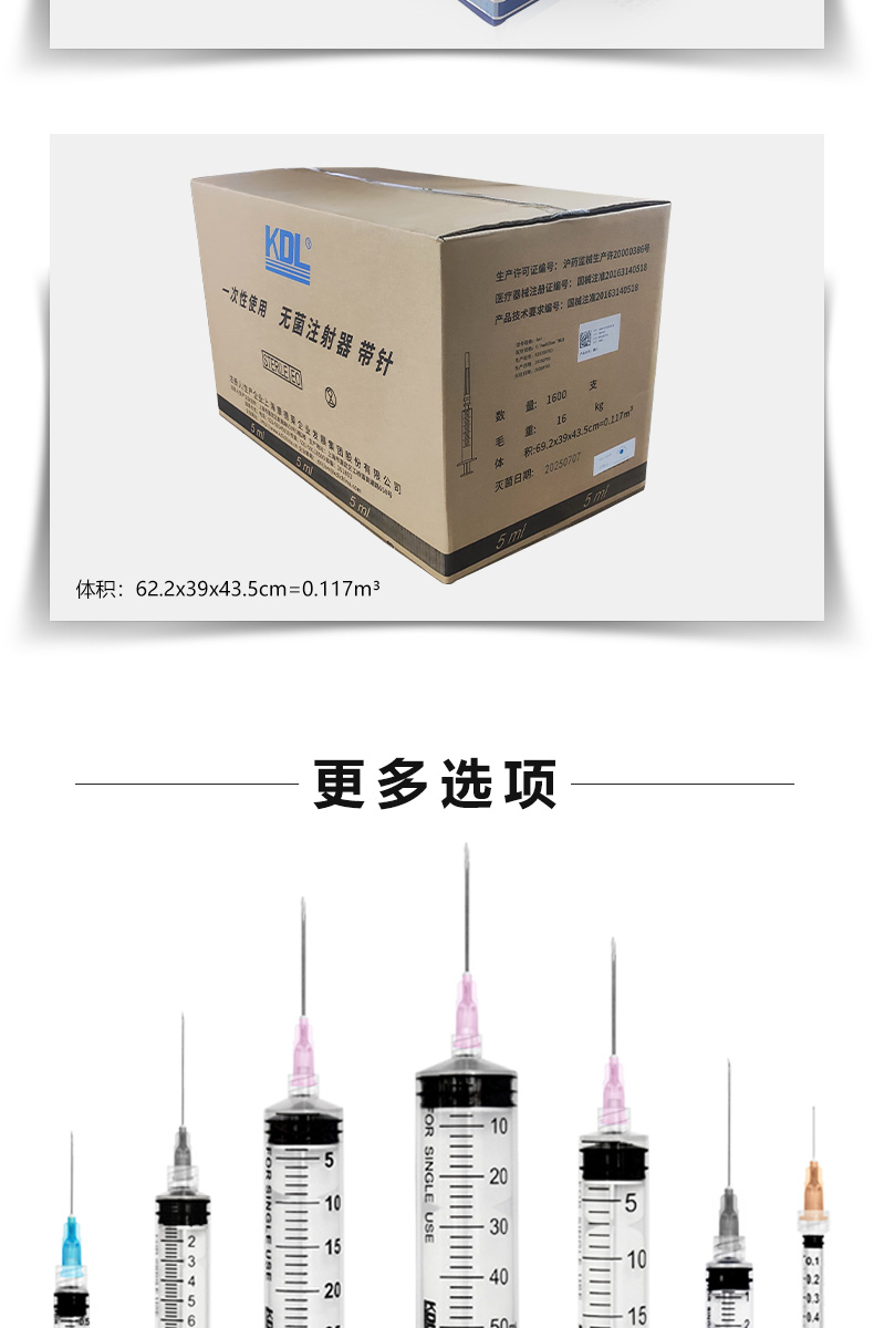 - 多种小包装形式:具备全塑包装、纸塑包装等各种形式,客户可自行选择,带针规格按客户合同