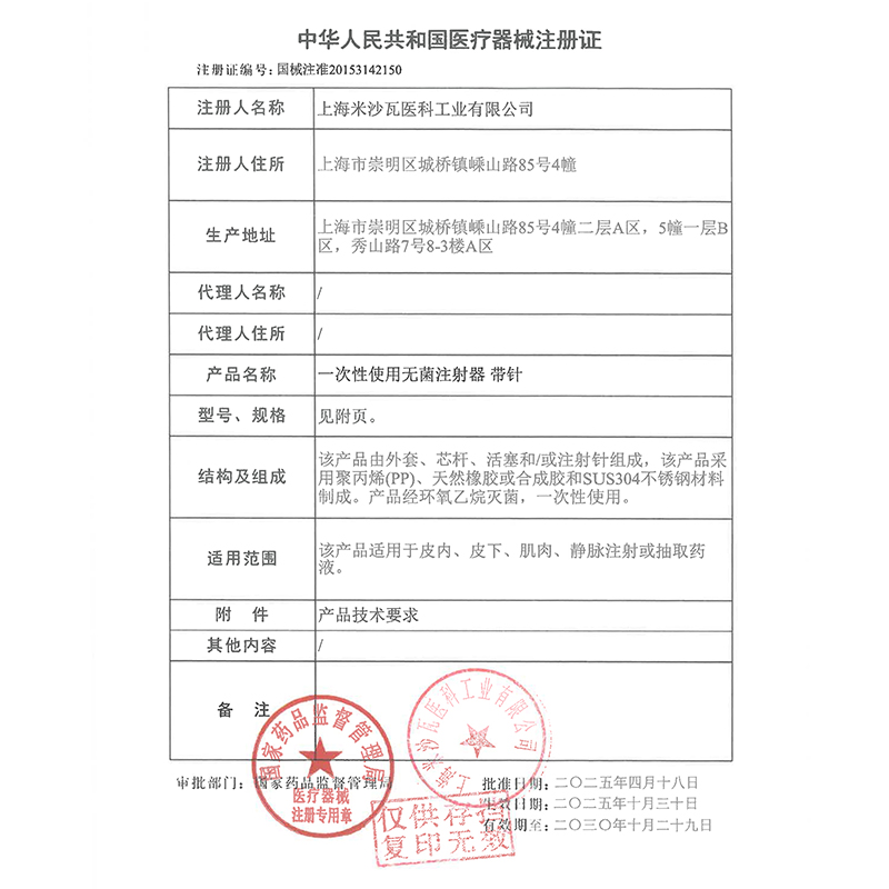 棱牌(米沙瓦)一次性使用无菌注射器订购指南