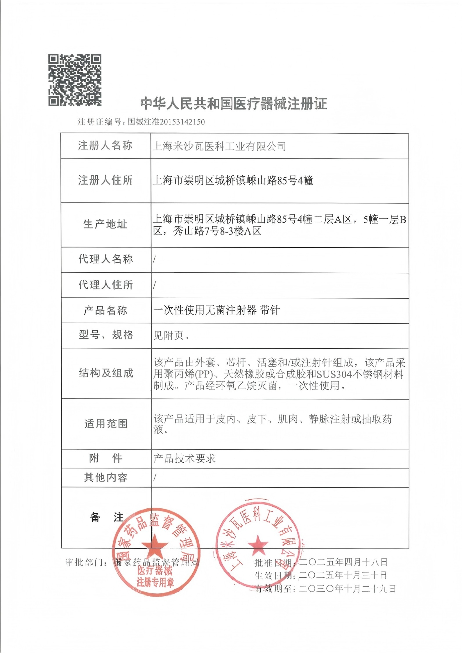 - 产品名称:一次性使用无菌注射器