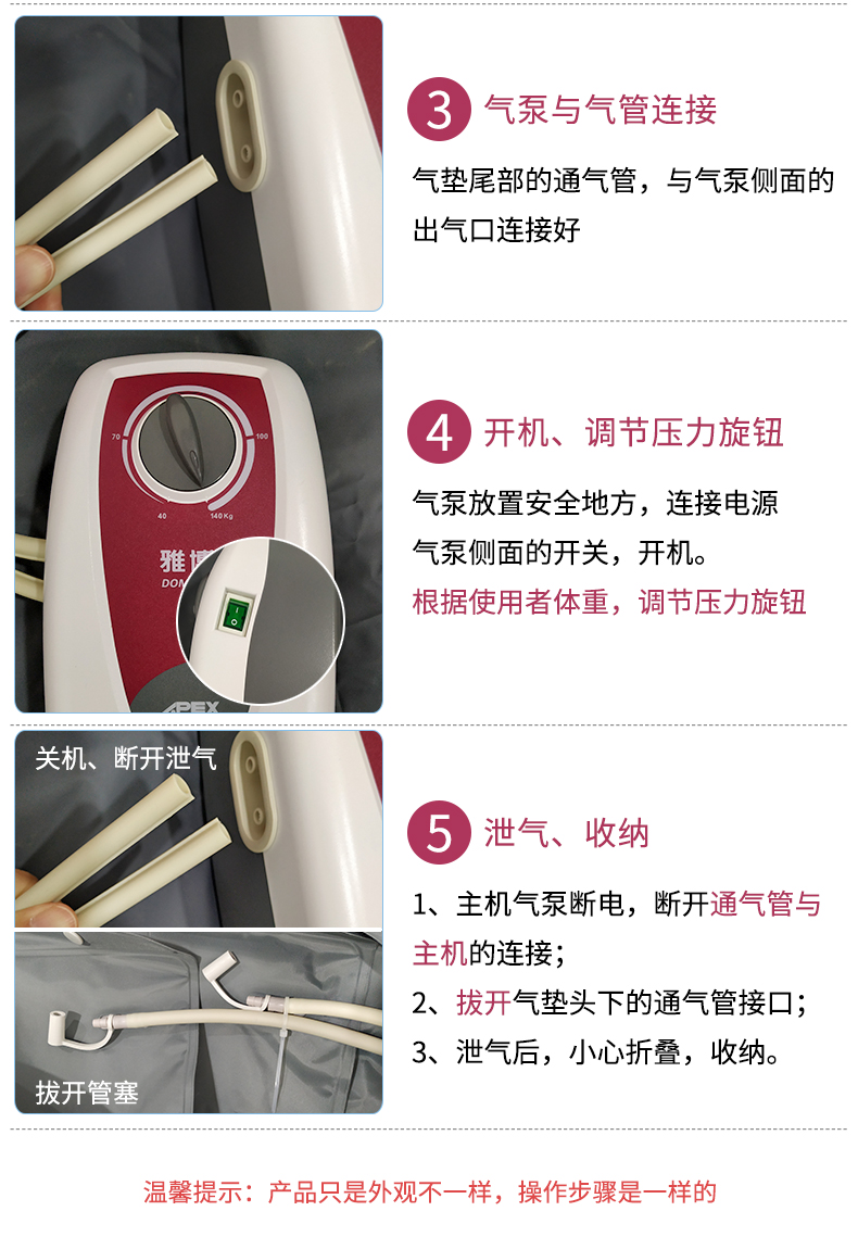 - 二管交替:气囊稳定交替能有效避免皮肤持续受压,进而达到预防褥疮的效果