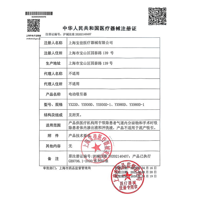 - 电动吸引器YX930D-1是一台高负压、高流量的移动式医用吸引装置,适用于医疗机构吸除患者气道内的分泌物和手术时患者体内渗出液、冲洗液之用,产品不适于流产吸引。
