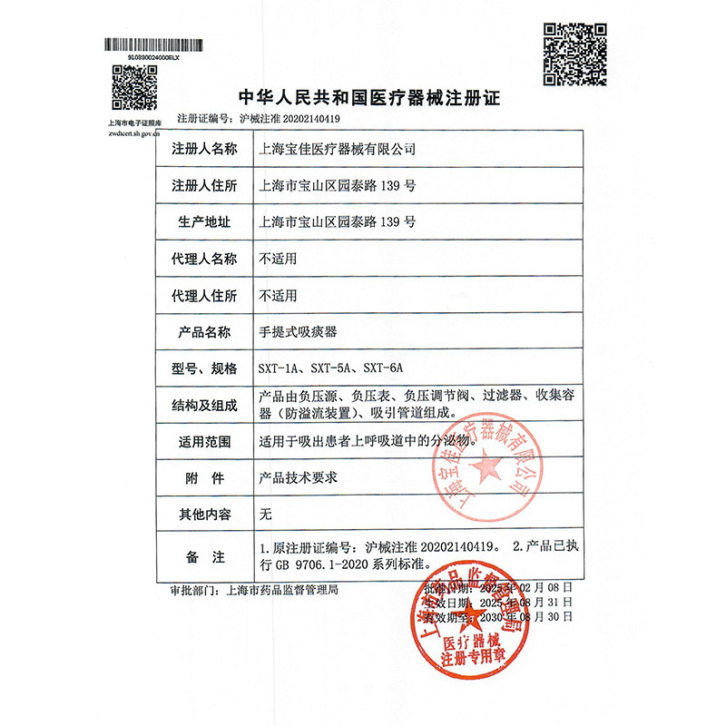 | 吸痰器 | 手提式 | SXT-1A | 成人吸痰器 |