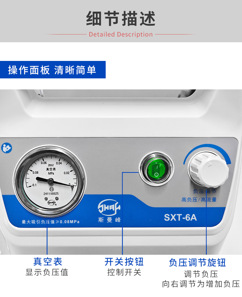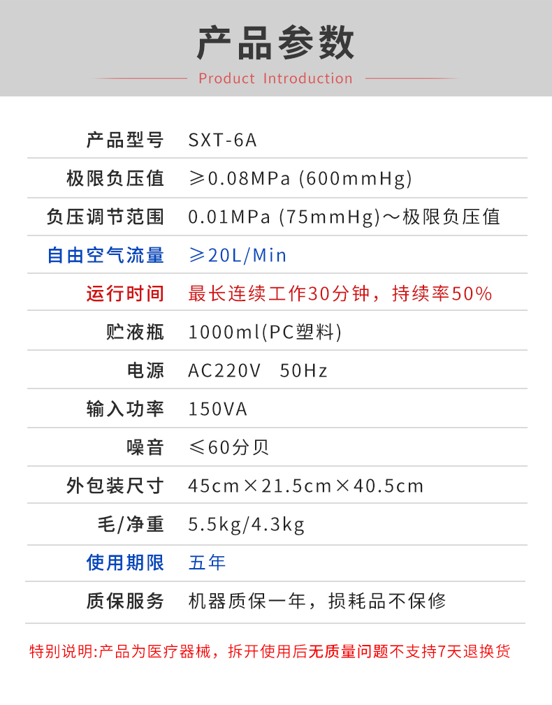 上海斯曼峰 手提式吸痰器 SXT-6A 技术参数: