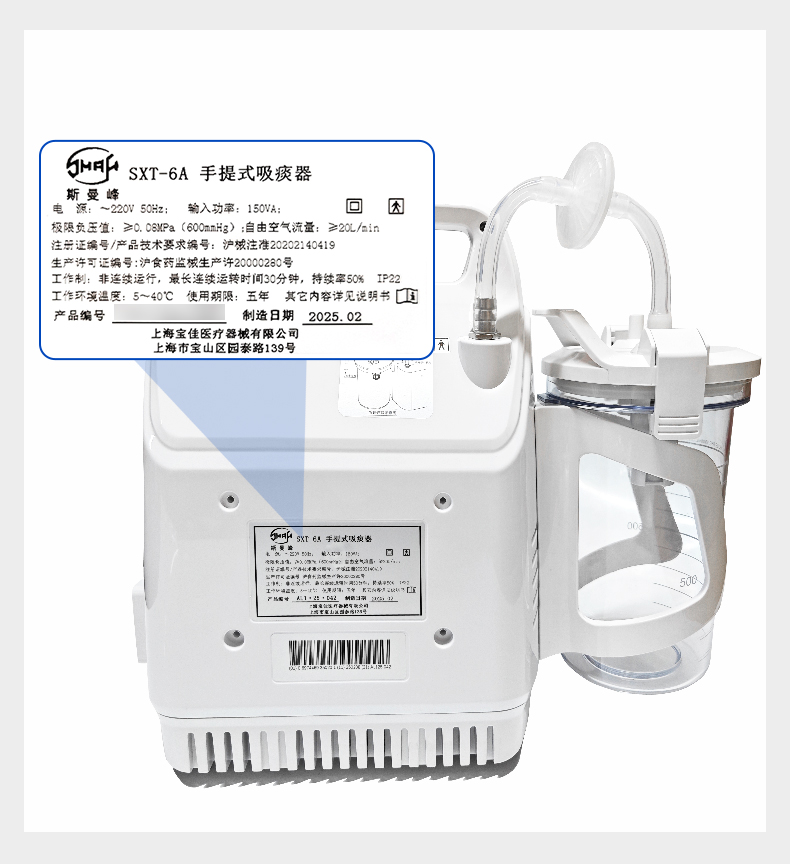 - 上海斯曼峰手提式吸痰器系列吸引设备,适用于吸出患者上呼吸道中的分泌物,可减轻病患者特别是急救病人痰阻塞的痛苦,是医疗单位及家庭急救、护理的理想医疗设备。