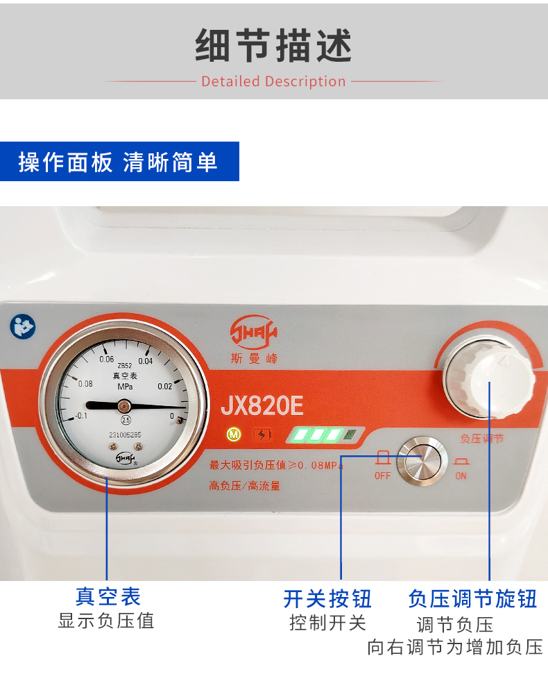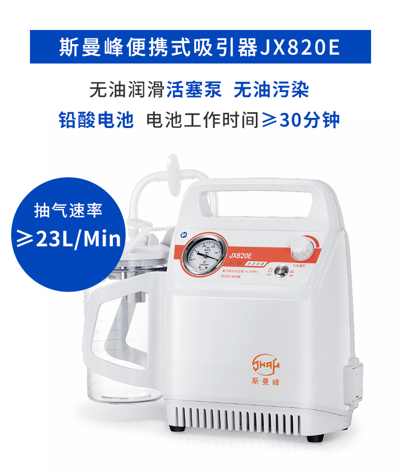 上海斯曼峰 便携式吸引器 JX820E(铅酸电池)产品特点:
