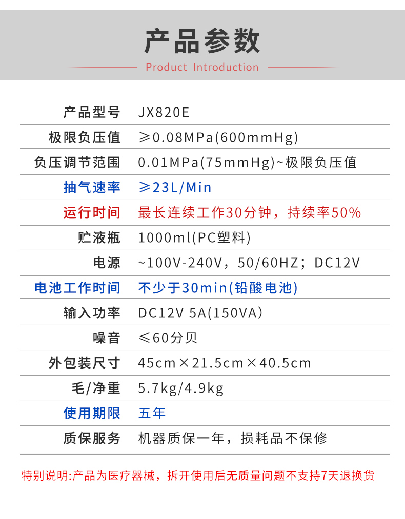 | JX820D-1(锂电池) | 便携式吸引器(一个小时) | ||