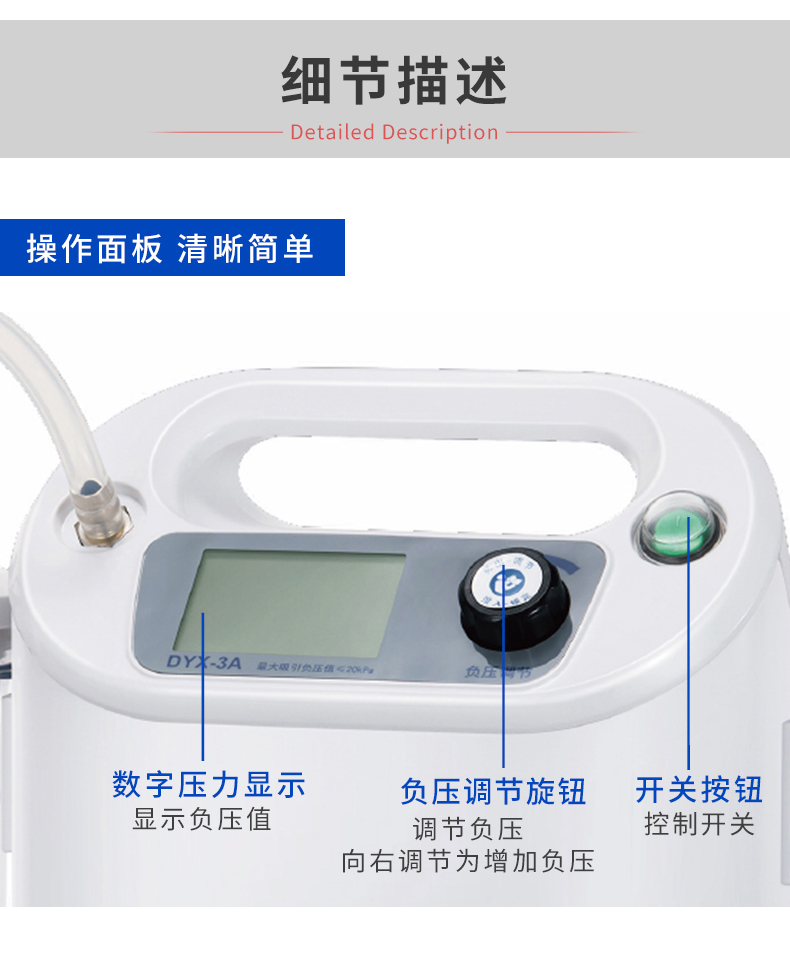 - 负压调节装置具有锁定功能,可根据需要任意设定负压值;