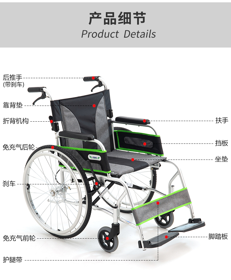 MIKI三贵 手动轮椅车M-43RK 产品特点:
